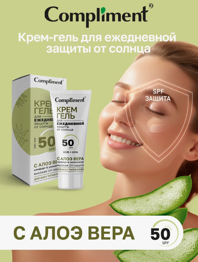 Крем-гель для ежедневной защиты от солнца Compliment SPF 50 с алоэ вера, 50 мл купить в Бресте по доступной цене